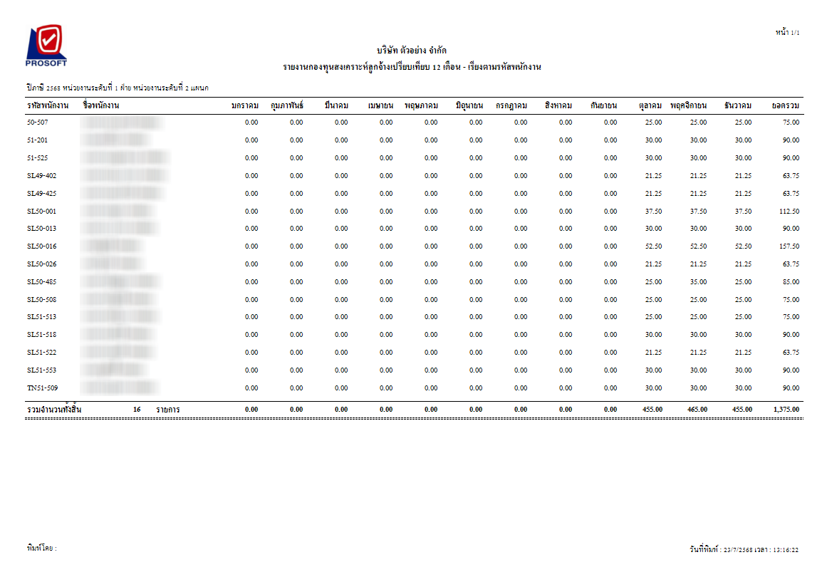 เป็นการแสดงข้อมูลประมวลผลหักกองทุนสงเคราะห์ลูกจ้าง พนักงานสะสม เปรียบเทียบตามเดือน  12 เดือน โดยมีรายละเอียดดังนี้