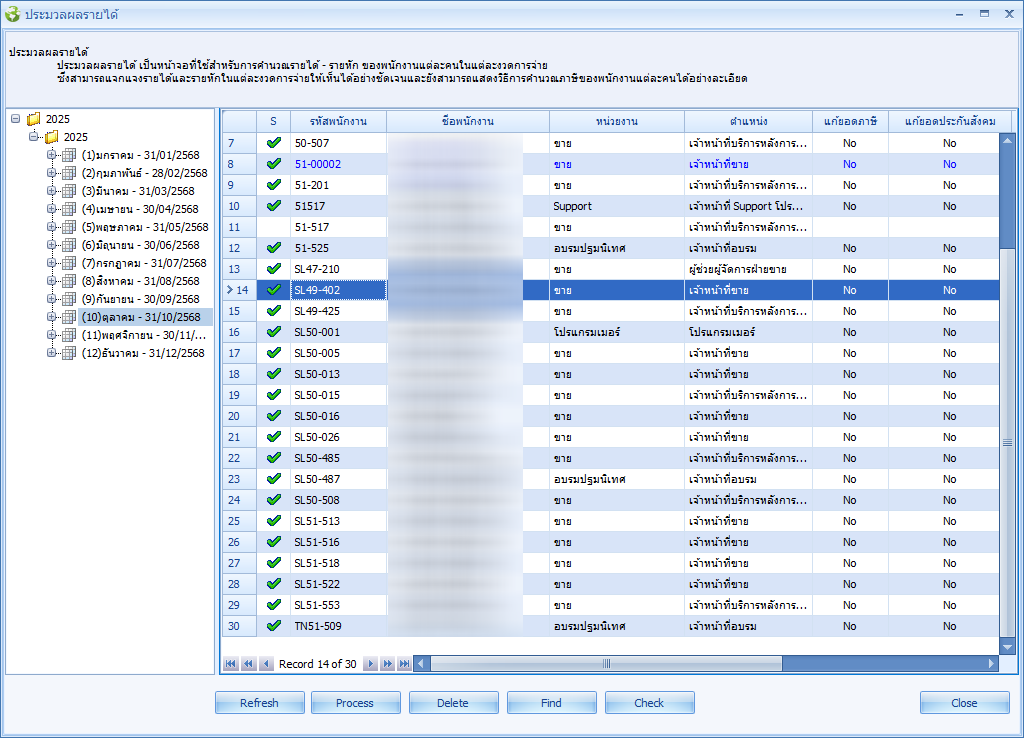 1. ลบข้อมูลประมวลผล กองทุนสงเคราะห์ลูกจ้าง ของพนักงาน ในปีงวดการจ่าย ของปีที่ประมวลผลปิดสิ้นปี