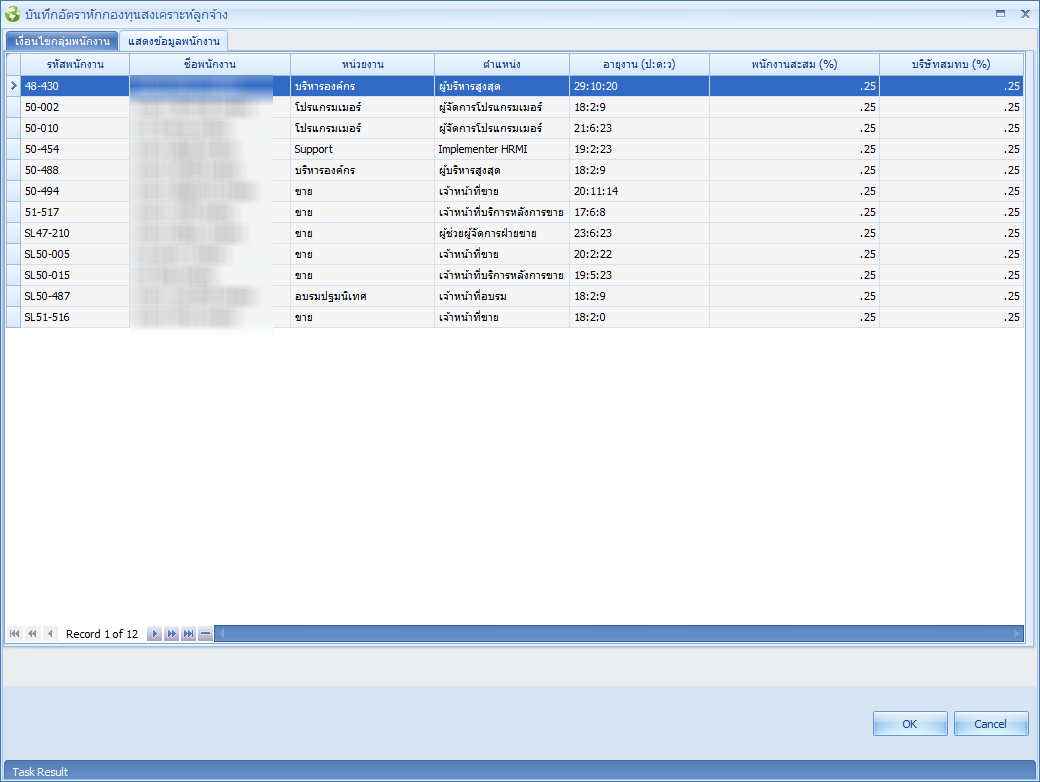 กดปุ่ม OK เพื่อบันทึกอัตราหักกองทุนสงเคราะห์ลูกจ้าง ตามข้อมูลที่แสดงอยู่ในหน้าจอ