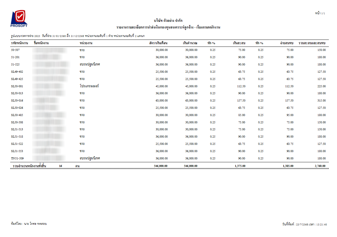 Payroll Report > รายงานรายละเอียดการนำส่งเงินกองทุนสงเคราะห์ลูกจ้าง