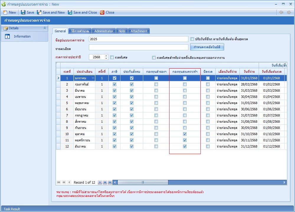 Payroll Module > ประมวลผลสิ้นปี การประมวลผลปิดสิ้นปี ให้รองรับ กองทุนสงเคราะห์ลูกจ้าง ดังนี้