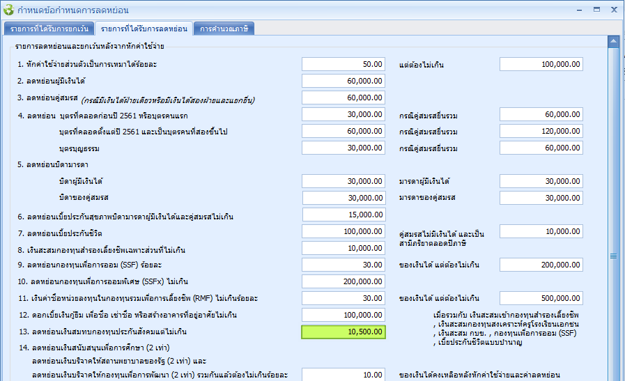 เพิ่มการลบข้อมูลลดหย่อนภาษี และเงินยกเว้นหลังประมวลผลสิ้นปีดังต่อไปนี้