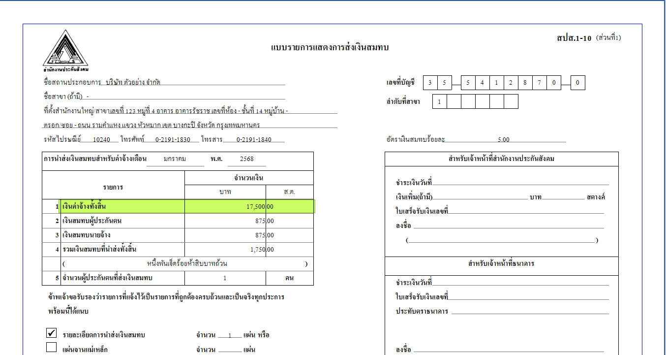 • Payroll > สปส.1-10 (ส่วนที่1) แบบรายการแสดงการส่งเงินสมทบ