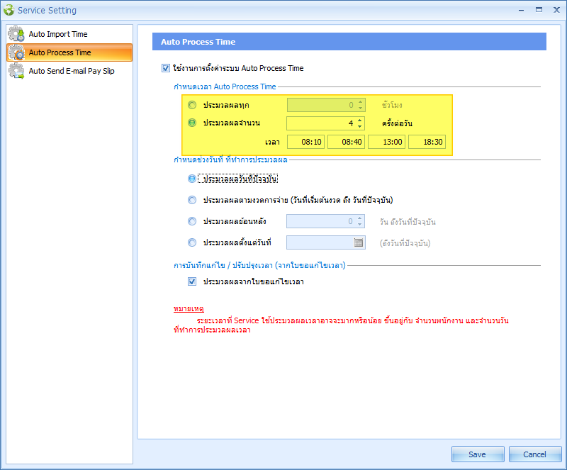 ปรับให้สามารถกำหนดเวลาในการประมวลผลได้สูงสุด 4 ครั้งต่อวัน ดังนี้