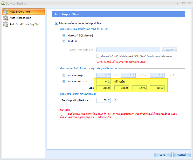 1. แท็บ “Auto Import Time”